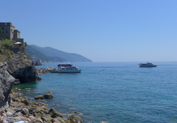 두 번째 마을 마나롤라(Manarola) 인근 라스페치아 항에서 여행자들을 싣고 친퀘테레 해안선을 둘러보는 페리선들