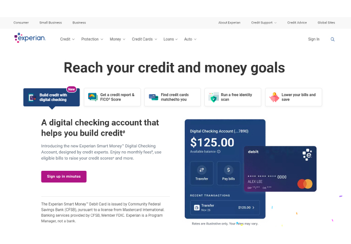 AI와 기계 학습을 활용한 신용평가를 제공하는 ‘엑스페리안(Experian)’의 홈페이지