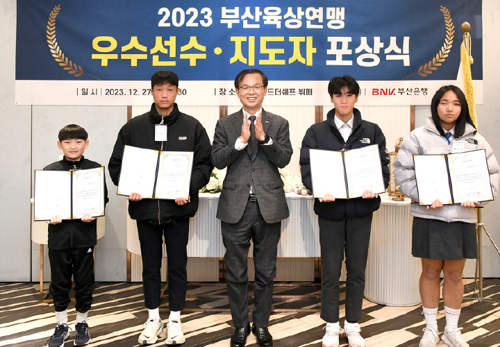부산은행은 12월 27일 전국체전과 소년체전에서 우수한 성적을 거둔 부산지역 선수 및 지도자에 대한 포상금 전달식을 개최했다. 이날 전달식에서 부산은행은 제104회 전국체전에서 부산에 금메달을 안긴 장대높이뛰기 윤예린(부산체고)선수를 비롯해 제52회 소년체전에서 활약한 부산 지역 청소년 육상선수들과 지도자들에게 상패와 포상금을 수여했다. 또한 미래 육상 유망주 발굴과 격려를 위해 ‘육상 꿈나무 장학생’을 선발하고 격려금을 전달했다. 부산은행은 1981년부터 부산육상연맹 회장사를 역임 중이며, 2007년부터 부산 지역 우수 육상선수와 지도자를 대상으로 포상금 전달식을 이어오고 있다.