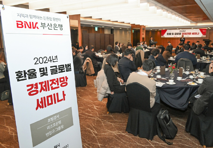 부산은행은 12월 6일 롯데호텔 부산에서 부·울·경 지역의 수출입 업체 주요 담당자를 대상으로 ‘2024 환율 및 글로벌 경제전망 세미나’를 개최했다. 이번 세미나는 국내외 금융 및 외환시장 이슈, 주요 글로벌 시장 동향 등의 정보를 공유해 지역 기반 수출입 기업의 환리스크 관리에 실질적인 도움을 주기 위해 마련됐으며, 미즈호은행의 변정규 그룹장이 강사로 나서 ‘최근 외환시장 주요 이슈와 향후 전망’을 주제로 특강을 진행해 참석자들의 큰 호응을 받았다.