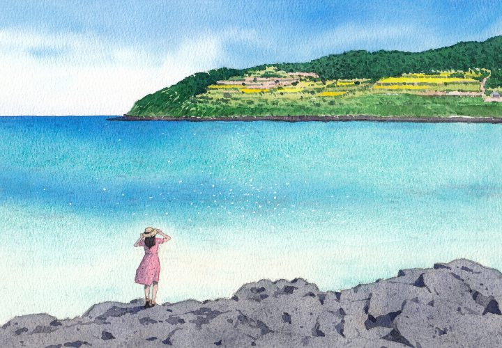 제주의 자연에 매료되어 수년간 방문해오다 지난 2022년부터 제주도민이 되어 이곳에서 마주한 여러 장면들을 그림으로 기록하고 있습니다. 모든 계절이 아름답지만 결핍의 계절 끝 다시 푸르러지는 봄이야말로 제주의 가장 눈부신 순간이 아닐까 해요. 섬 안 가득 피어났던 제주의 봄꽃들을 떠올려봅니다.