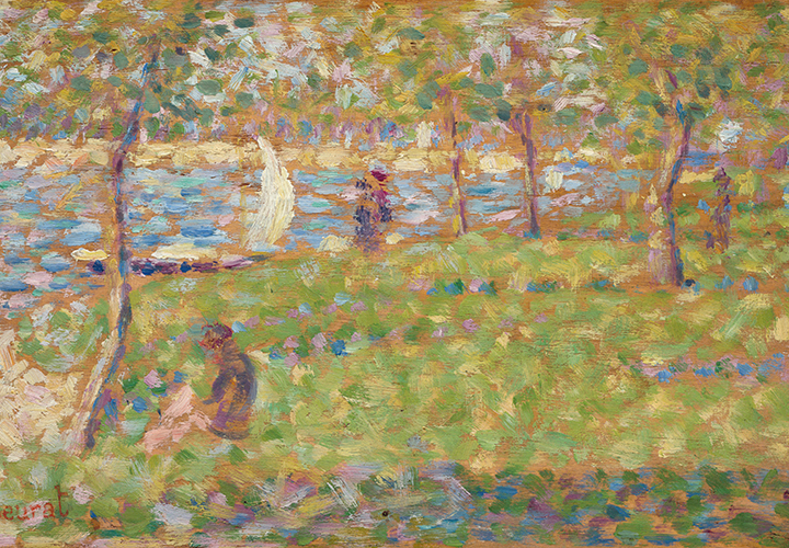 그리고 쇠라는 자신의 점묘법을 완성하기 위해 그랑드 자트 섬을 찾아가 그곳의 풍경을 그리기로 마음먹게 되는데요. 그랑드 자트 섬은 센강을 따라 파리로 진입하는 뱃길 초입에 떠 있는 작은 섬으로, 당시 파리 시민들의 큰 사랑을 받던 휴양지였습니다.