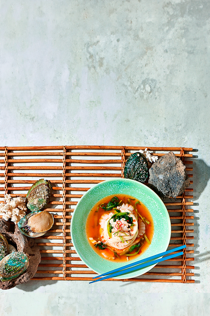 살짝 절인 열무에 통보리와 홍고추, 액젓, 다진 마늘로 맛을 내고 거기에 전복껍데기 육수로 물김치 베이스를 만들어보자. 후루룩 삶은 탱글한 소면에 잘 익은 열무물김치, 그리고 오독오독 맛있는 전복까지 저며 얹으면 계절에 맞는 보양식이 따로 없다.