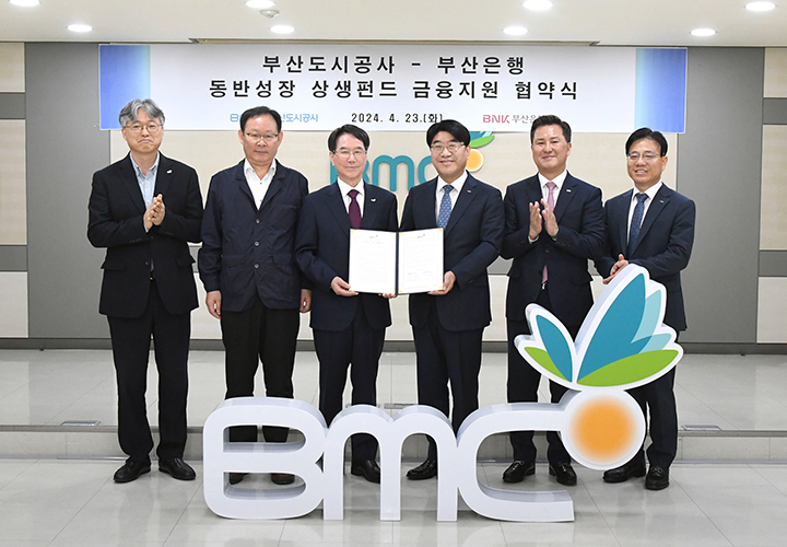 부산은행은 4월 23일 부산도시공사와 ‘부산 중소기업과의 상생을 위한 금융지원 협약’을 체결했다. 이번 협약을 통해 부산은행과 부산도시공사는 총 300억 원 규모의 상생대출펀드를 조성하고, 업체당 최대 10억 원 한도의 대출지원과 3.50%p 감면금리를 제공한다. 주된 지원대상은 부산광역시에 소재하며 사업 개시일로부터 2년 이상 된 중소기업 중 부산도시공사가 조성한 산업용지에서 사업을 영위중인 제조업체다. 부산도시공사 협력 건설업체 및 용역업체도 포함된다.
