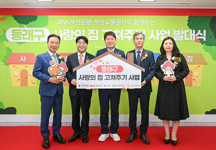 부산은행은 4월 29일 동래구노인복지관에서 부산교통공사와 함께 ‘동래구 사랑의 집 고쳐주기 사업’ 발대식을 가졌다. ‘사랑의 집 고쳐주기 사업’은 지역 주민들의 주거복지 개선을 위해 민관이 협업해 추진하는 사업으로 작년 6월 사상구를 시작으로 사하구와 해운대 지역 등 주거환경 취약계층 총 61가구와 경로당 8곳을 수선했다. 이번 발대식에서는 동래구 지역 주거환경 소외계층 20가구를 선정하고 부산은행 지역봉사단과 부산교통공사 휴메트로 봉사단이 벽체·지붕 누수 방지, 벽지 및 장판 교체, 방충망 보수 등 노후 주택 수선을 실시한다.