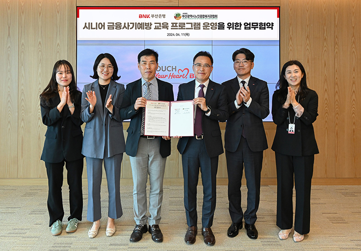 부산은행은 4월 11일 본점에서 지역 내 어르신을 대상으로 한 금융교육 지원사업을 위해 부산광역시노인종합복지관협회와 업무협약을 실시했다.