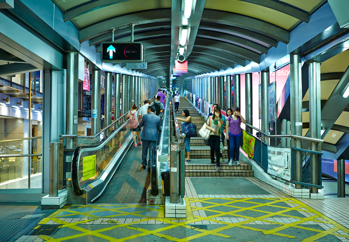 홍콩 관광청은 센트럴에 ‘올드 타운’이라는 부재를 붙여, ‘홍콩에서도 가장 오래되고 다이내믹한 지역 중 하나’로 소개한다. 우리에게는 영화 속 낭만적인 배경이지만, 현지인들에게는 생활의 중심이다. 에스컬레이터는 주민들의 생활 리듬에 맞춰 오전 6시에서 10시까지는 하행, 이후부터 자정까지는 상행으로만 운행된다. 에스컬레이터를 따라 올라가며 다닥다닥 붙은 각양각색의 건물들, 밖으로 튀어나온 베란다와 테라스, 바쁘게 오가는 행인들을 보며 홍콩의 생생한 일상을 느낄 수 있다.