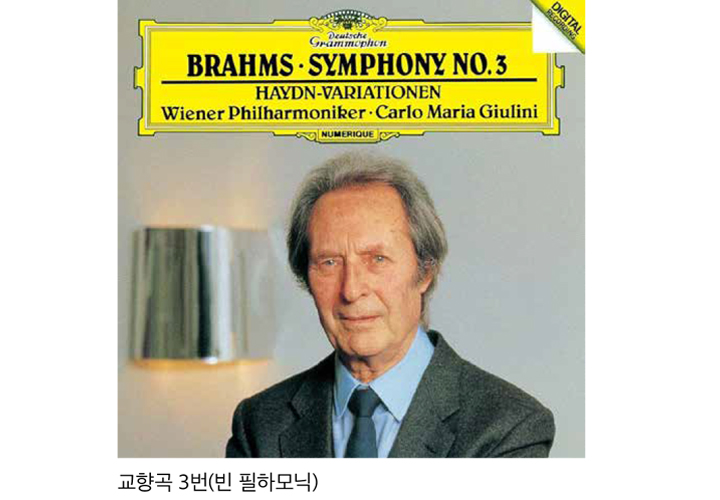 완성된 이 작품은 빈 필하모닉에 의해 초연되었습니다. 추천 음반으로는 이 작품의 초연을 했던 빈 필하모닉의 연주 중, 이탈리아의 지휘자 카를로 마리아 줄리니가 만년에 남긴 음반(DG 4316812)이 있습니다. 줄리니의 음악이 선율을 따라가며 감상에 빠지기 좋다면, 오이겐 요훔이 지휘한 베를린 필하모닉 음반(DG E4497152)은 긴밀하게 움직이는 오케스트라의 연주가 인상 깊습니다. 서로 다른 두 버전의 브람스 교향곡 3번 3악장을 모두 감상해 보며 보이는 삶 너머의 것을 즐기는 여유를 누려보시길.
