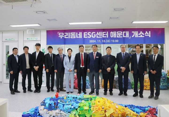 부산은행은 11월 13일 해운대구 반송동에 소재하는 ‘우리동네 ESG센터’ 3호점 개소식에 참여했다. 이번 ESG센터는 지역환경문제와 노인 일자리창출 등을 위해 부산은행과 부산시, 해운대구, 한국노인인력개발원, 한국주택금융공사 등이 함께 조성했다. ‘우리동네 ESG센터’는 지역 주민이 분리 배출한 폐플라스틱을 지역 노인 인력이 수거해 LED조명과 안전손잡이 등으로 재가공한 다음 다시 지역 주민에게 돌려주는 자원 순환센터이며 금정구와 동구에 ESG센터를 운영 중이다.