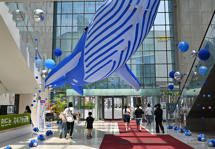 북구에 거주하는 시민 제화주 씨는 “어린 두 자녀와 함께 축제에 참여했는데 첫째는 어린이 미술대회에서 그림을 그리고, 둘째는 다양한 프로그램에 참가해 즐거운 시간을 보냈다”며 “도서교환전에서는 아이들을 위한 유익한 책도 많이 얻을 수 있어 정말 뜻깊은 하루였다”고 소감을 전했다. 한편, 본점 로비에는 멸종위기종 고래를 모티브로 한 대형 포토존이 설치되어 환경 보호의 메시지를 전달했고, 야외 놀이터와 드로잉 존에서는 아이들이 자유롭게 뛰놀며 가족과 함께 즐거운 추억을 쌓을 수 있었다.