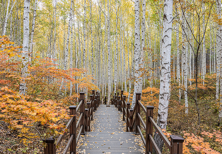 잠에서 덜 깬 도시를 빠져나와 ‘비밀의 정원’을 만나러 가는 길은 어딘가 숨겨진 보석을 찾아 떠나는 설렘이 있다. 인제군 남면 갑둔리 ‘비밀의 정원’은 이름처럼 은밀하다. 서리가 내리고 아침 안개로 피어나는 숲속의 모든 풍경이 신비롭게 다가오는 곳이다. 비밀의 정원을 빠져나와 지방도와 국도를 갈아타고 북쪽으로 한 시간 남짓 달리면 자작나무가 숲을 하얗게 휘감고 있다. 탐방은 입구 초소에서 방명록을 작성하고 약 3.5km의 임도를 따라 올라가는 코스다. 차에서 내려 걸으며 단풍과 자작나무의 대비가 만들어내는 풍경은 황홀하다.