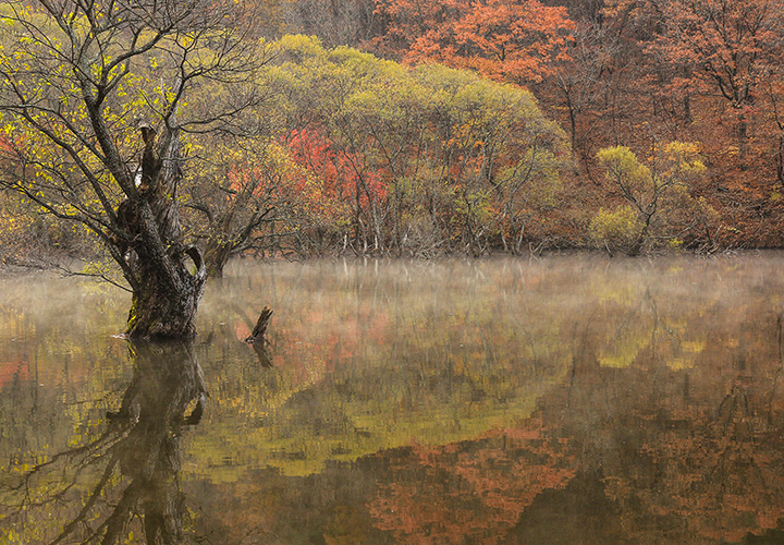 주산지는 가급적 새벽안개가 피어오를 무렵 방문하는 것이 좋다.상시개방. 절골분소 054-873-0019